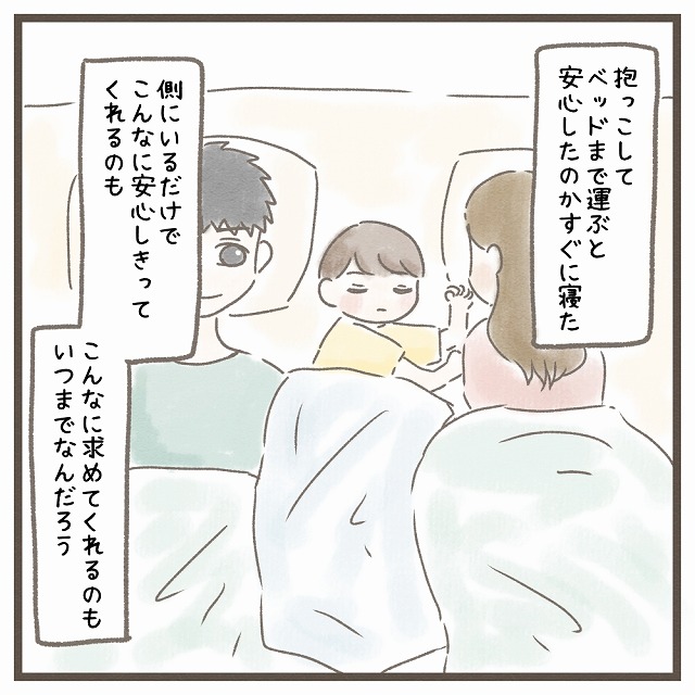 「こんなに頼ってくれる時期は案外短いのかもしれない」と、ちょっと切なくなりながら寝顔を眺めた夜でした。