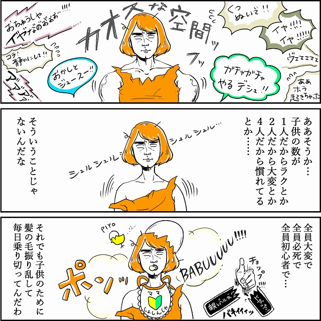 「私なんて2人でヒィヒィ言ってるのにすごい・・・プロお母さんだ・・・」と思いかけて、いやそれは違うなと。