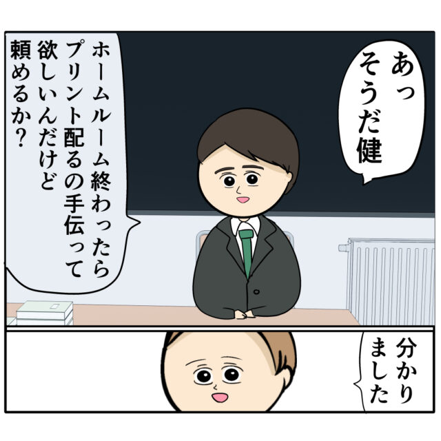 「あっ、そうだ健、ホームルームが終わったら、プリント配るの手伝って欲しいんだけど、頼めるか?」