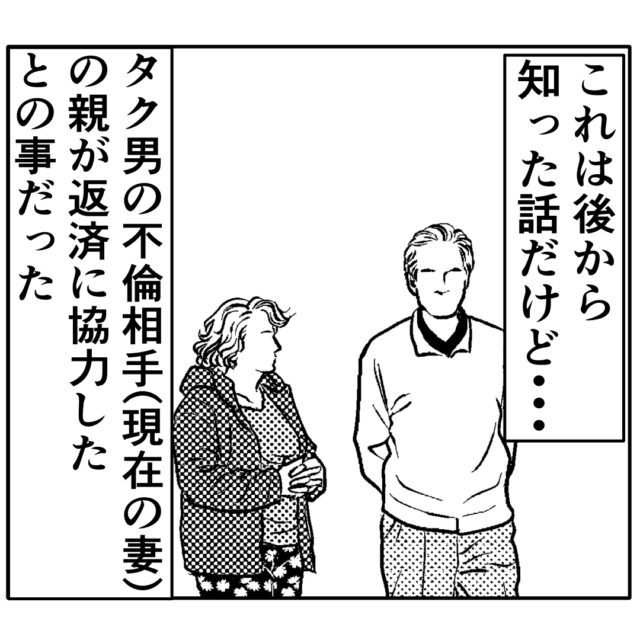 タク男さんの不倫相手(現在の妻)の両親が、借金の返済に協力したとのことだったようで・・。