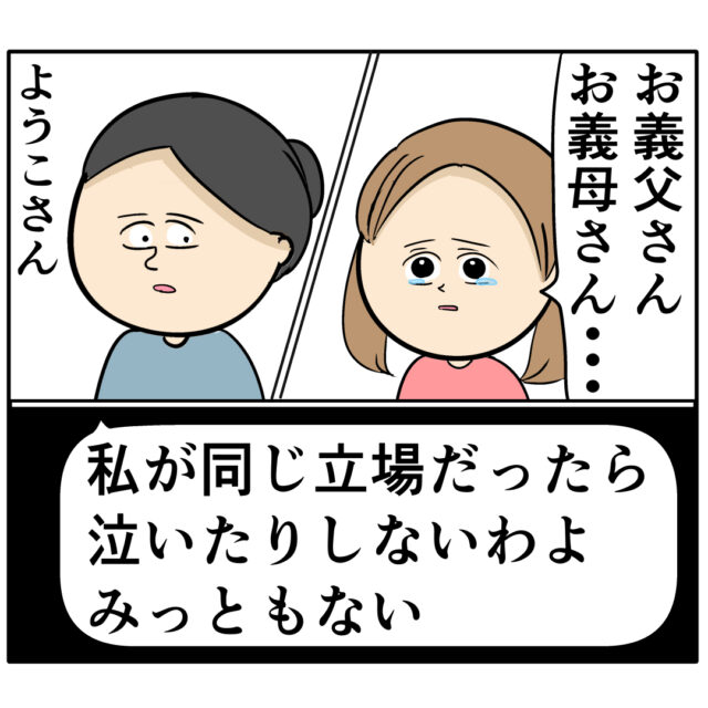え・・・お義母さん?そこは息子を叱ってようこさんに謝罪をするのが一般的なのでは・・・。義両親もタク男さんのこのとんでもない意見に賛成なのでしょうか?