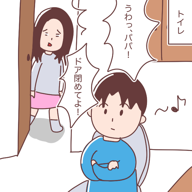 つい先ほどのこと。娘はトイレのドアを全開にして用を足す父親の姿を目撃し「うわっ、パパ!ドア閉めてよ!」と怒ったそう。