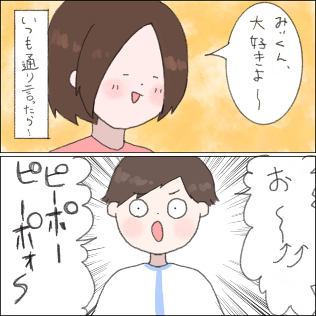 2歳の男の子みぃくんのお母ちゃんであるねむりひつじさんから、みぃくんに「大好きだよ」と伝えたときのお話です。