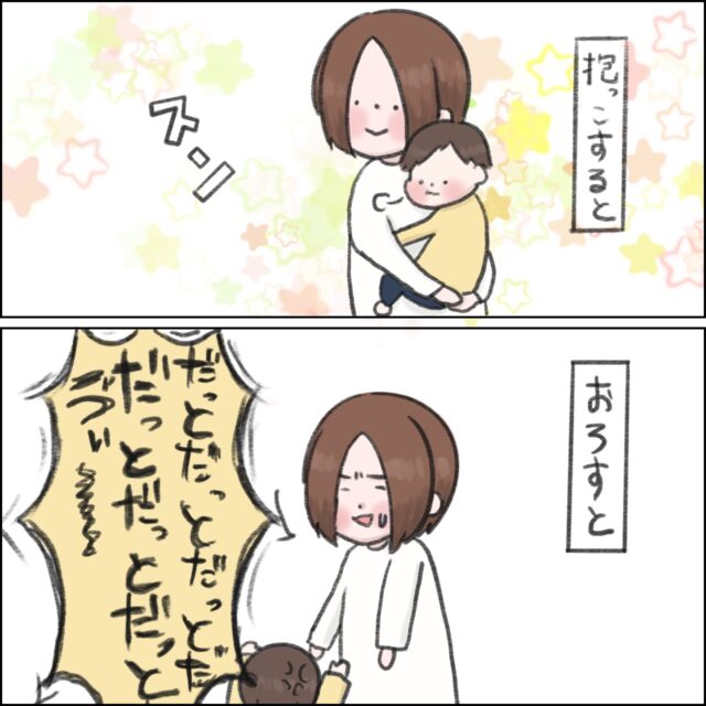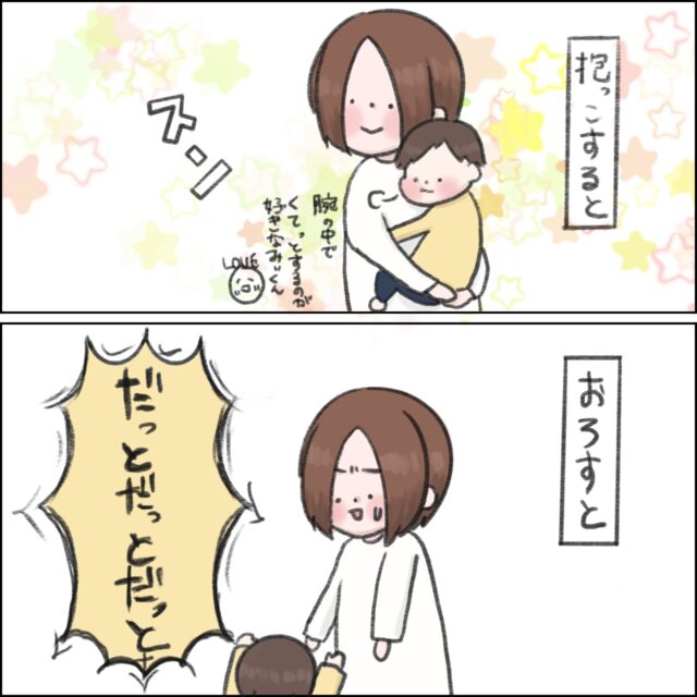 みぃくんは赤ちゃんの頃から常に抱っこしていないと泣いてしまうタイプだったのですが、2歳になっても抱っこマン。