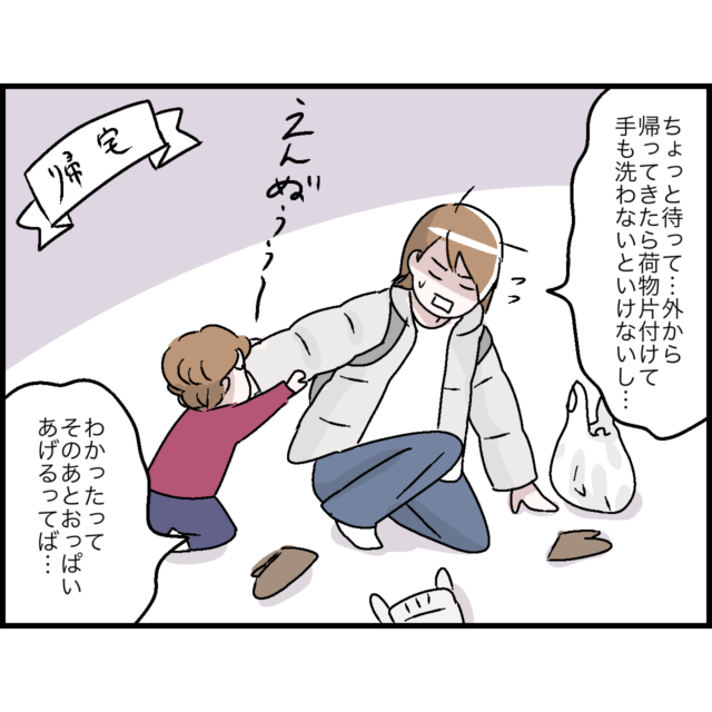 後悔した。イライラで娘に強く当たってしまった日。断乳すると決めた日[11]|しおは娘育児中。 2024年11月24日 >>1話目から読む 前回の話 卒乳が理想だったけれども、最終的に娘ちゃんの断乳を決意したしおさん。しおさんは母乳ばかりで離乳食を食べないことについて悩んでいました。野菜を可愛くアレンジしたり味付けや固さをかえて工夫しても全く食べませんでした。作っては捨てるの繰り返しでしおさんは嫌気がさし手作りをやめることにしました。しおさんはこの状況がいつまで続くのか不安でノイローゼになりそうでした。 断乳すると決めた日【11】 次の話 [作者]しお 令和4年10月長女出産。 はじめての育児にゆるーく奮闘中です。 ———- [編集]ママ広場編集 この記事をSHAREする この記事のカテゴリー マンガ子育て幼児