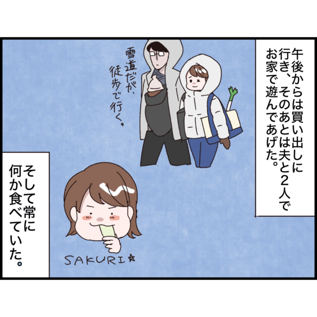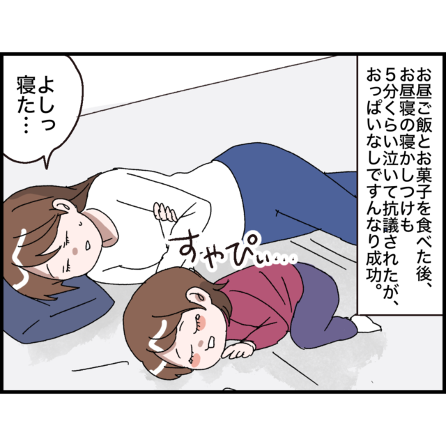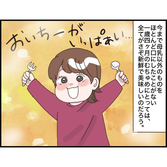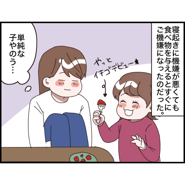 卒乳が理想だったものの、最終的には断乳を決意したしおさん。断乳3日目、この日も朝はご機嫌ななめな娘ちゃんでしたが朝ご飯を食べるとご機嫌に。食後、ケーキを買ってあったことを思い出しご主人と2人で食べることにしましたが、娘ちゃんが2人をじっと見つめるので罪悪感を感じてしまい食べづらいしおさん。断乳を始めてから急に大人の食べ物に興味を持ちだした娘ちゃんでした。