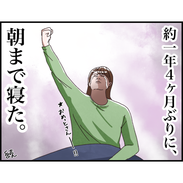 娘の声で起きたら朝7時。1年4ヶ月ぶりに一度も起きずに朝まで寝られた断乳5日目。断乳すると決めた日[29]|しおは娘育児中。 2024年12月04日 >>1話目から読む 前回の話 卒乳が理想だったものの、最終的には断乳を決意したしおさん。断乳4日目になると娘ちゃんはいつも以上に抱っこを求め甘えるようになり抱っこマンになっていました。そんな娘ちゃんはこの日もご機嫌で朝ごはんを食べ、自力でお昼寝をし、お昼ご飯も夜ご飯ももりもり食べました。そして、夜はご主人の寝かしつけですんなり就寝。この夜、ついにしおさんが待ち望んでいたことが起きるのでした。 断乳すると決めた日【29】 ———- [作者]しお 令和4年10月長女出産。 はじめての育児にゆるーく奮闘中です。 [編集]ママ広場編集部 この記事をSHAREする この記事のカテゴリー マンガ子育て幼児
