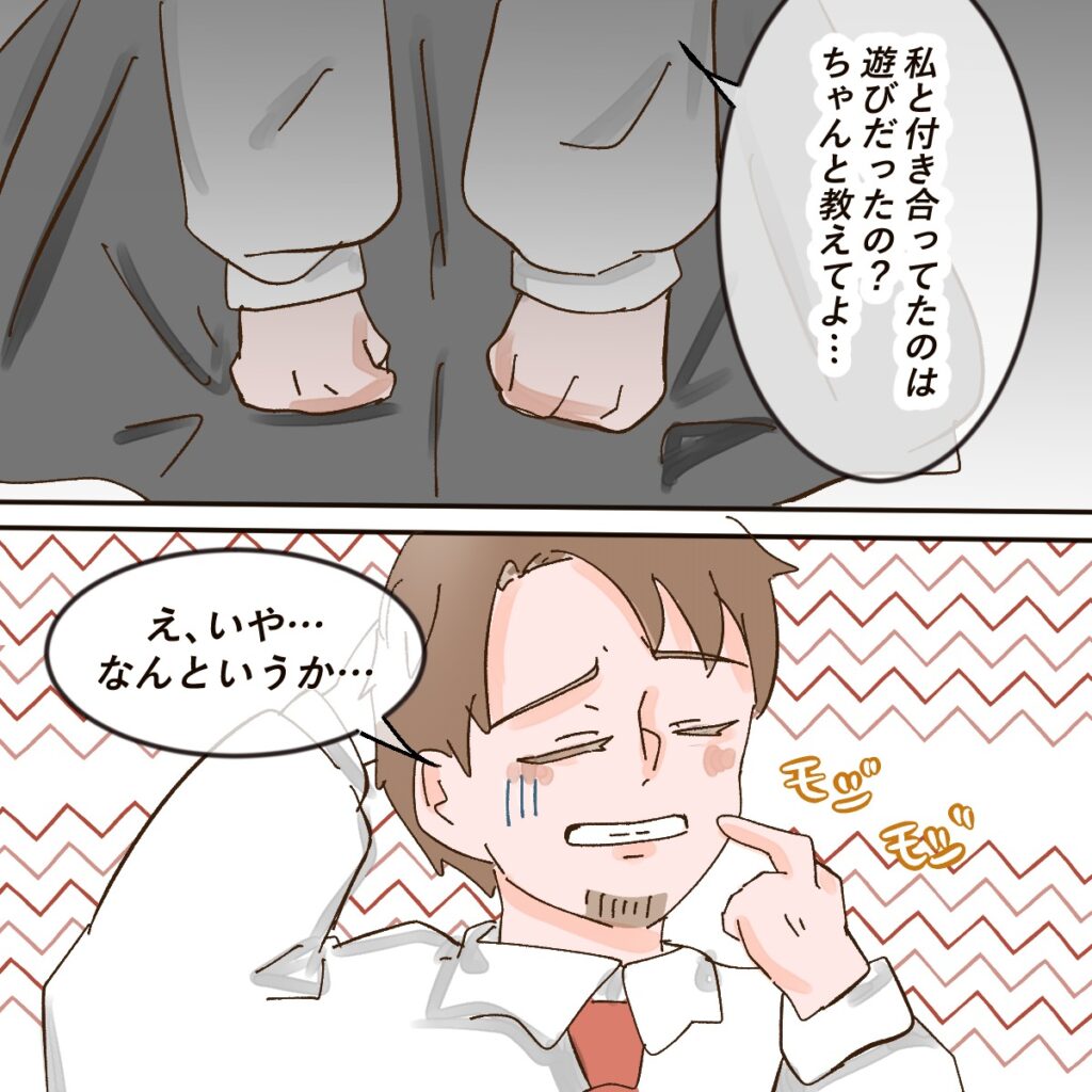 「私と付き合ってたのは遊びだったの?ちゃんと教えてよ・・」アイさんが懇願するようにそう言うと、「え、いや・・なんというか・・」とモジモジしている夫。