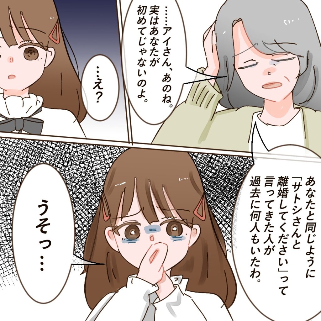そして、「・・アイさん、あのね。実はあなたが初めてじゃないのよ」私の言葉に「・・え?」と驚くアイさん。「あなたと同じように『サトシさんと離婚してください』って言ってきた人が過去に何人もいたわ」そう言うと、「うそっ・・」とアイさんは絶句。