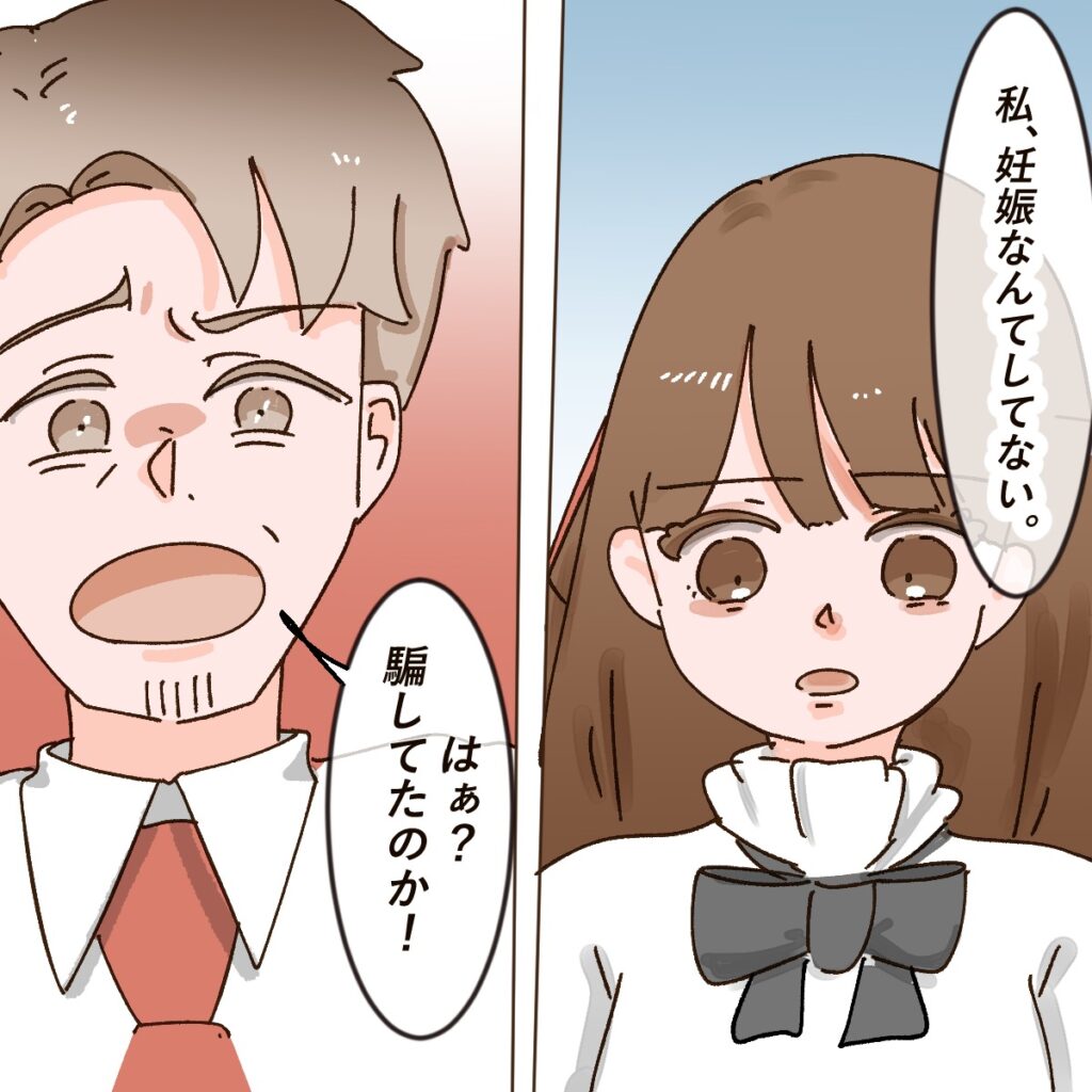 「私、妊娠なんてしてない」アイさんの言葉に、「はぁ?騙してたのか!」と呆れる夫。
