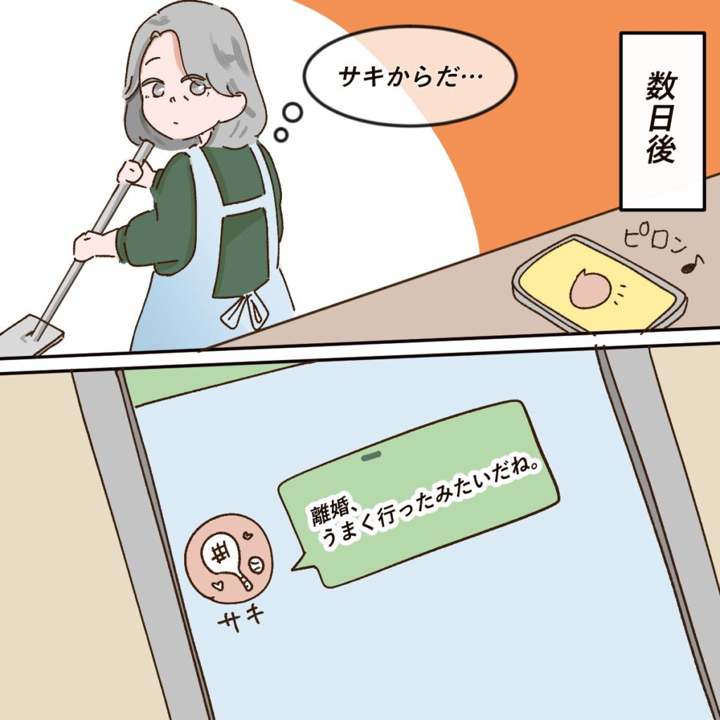 そこには、「離婚、うまくいったみたいだね」と書かれていました。
