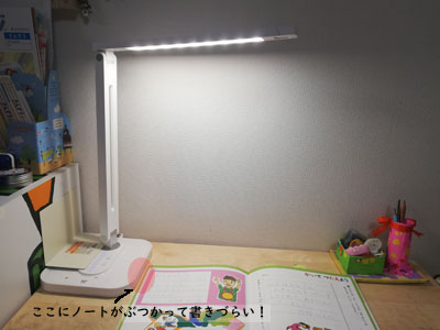 やはり、前の方がつかえてしまって下の方が書きづらそうなことがあります。でもデスクが小さいのでノートを上のほうに、ずらすことはできません。