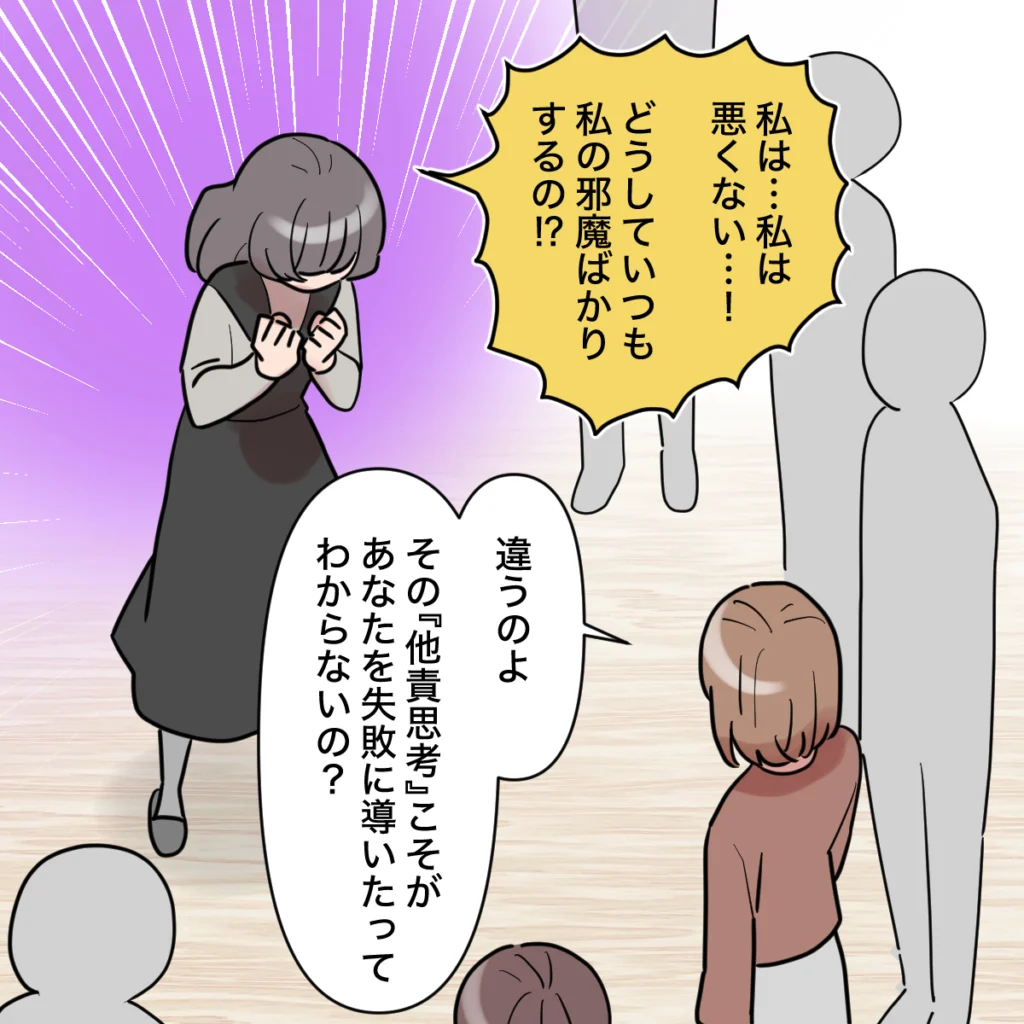 言い逃れのできない状況になっても「私は・・私は悪くない・・!どうしていつも私の邪魔ばかりするの!?」と声を荒げ被害者ぶる田中さんに、「違うのよ。その『他責思考』こそがあなたを失敗に導いたってわからないの?」と冷静に伝えた私。田中さんはあの時から何も変わっていませんでした。