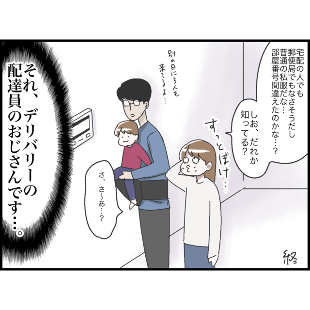 「宅配でも郵便配達でもなさそうだし・・それに普通の私服だな・・もしかして部屋番号間違えたのかな・・?しお、誰か知ってる?」