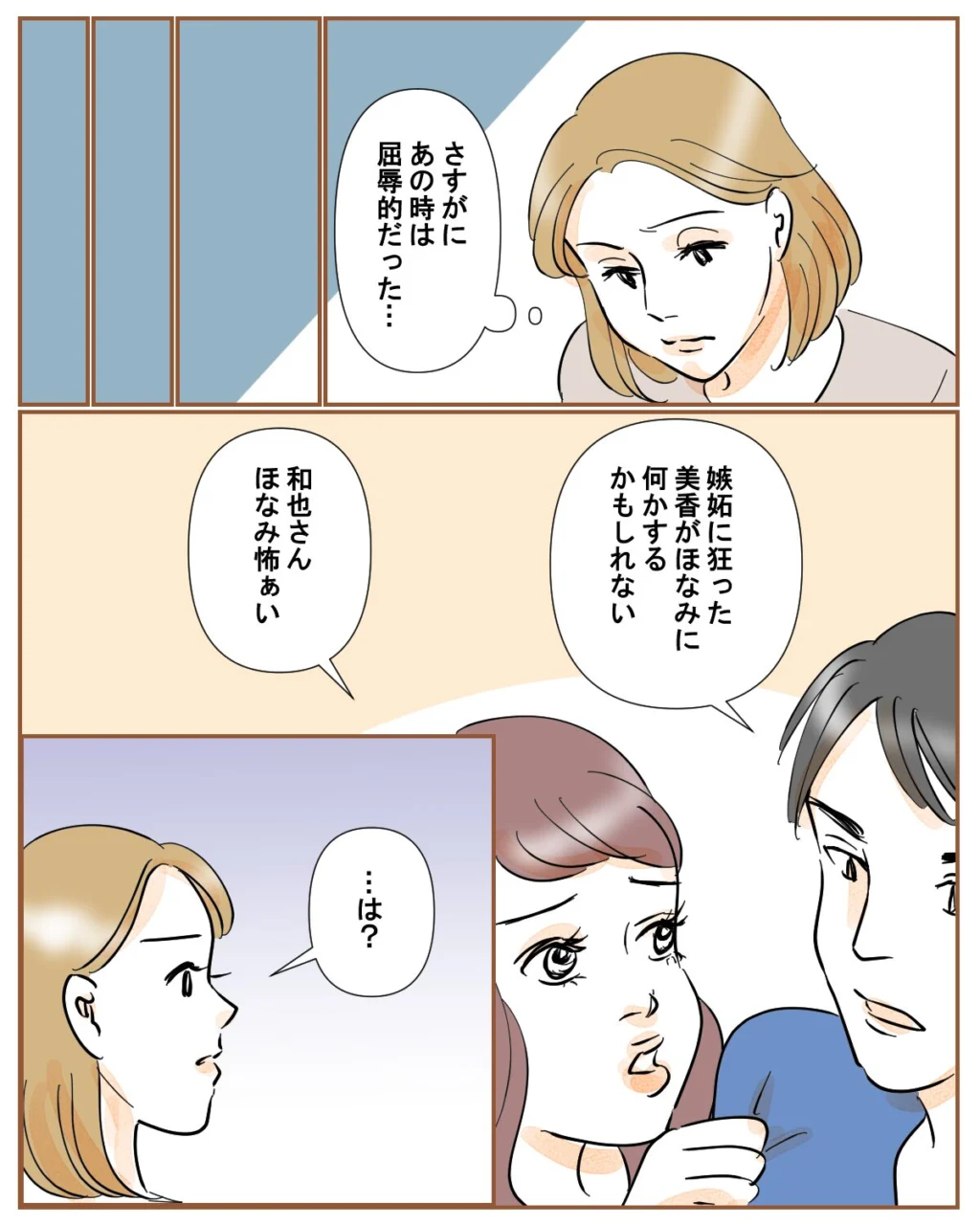 しかも、「心配するな、必ず俺が守る!二度とこちらとは接触しないでくれ」「和也さん大好き」なんて茶番まで見せつけられて・・・。あれはもう、屈辱以外の何ものでもありませんでした。この2人に嫉妬する人がいるのなら、ぜひ教えてほしいくらいです。