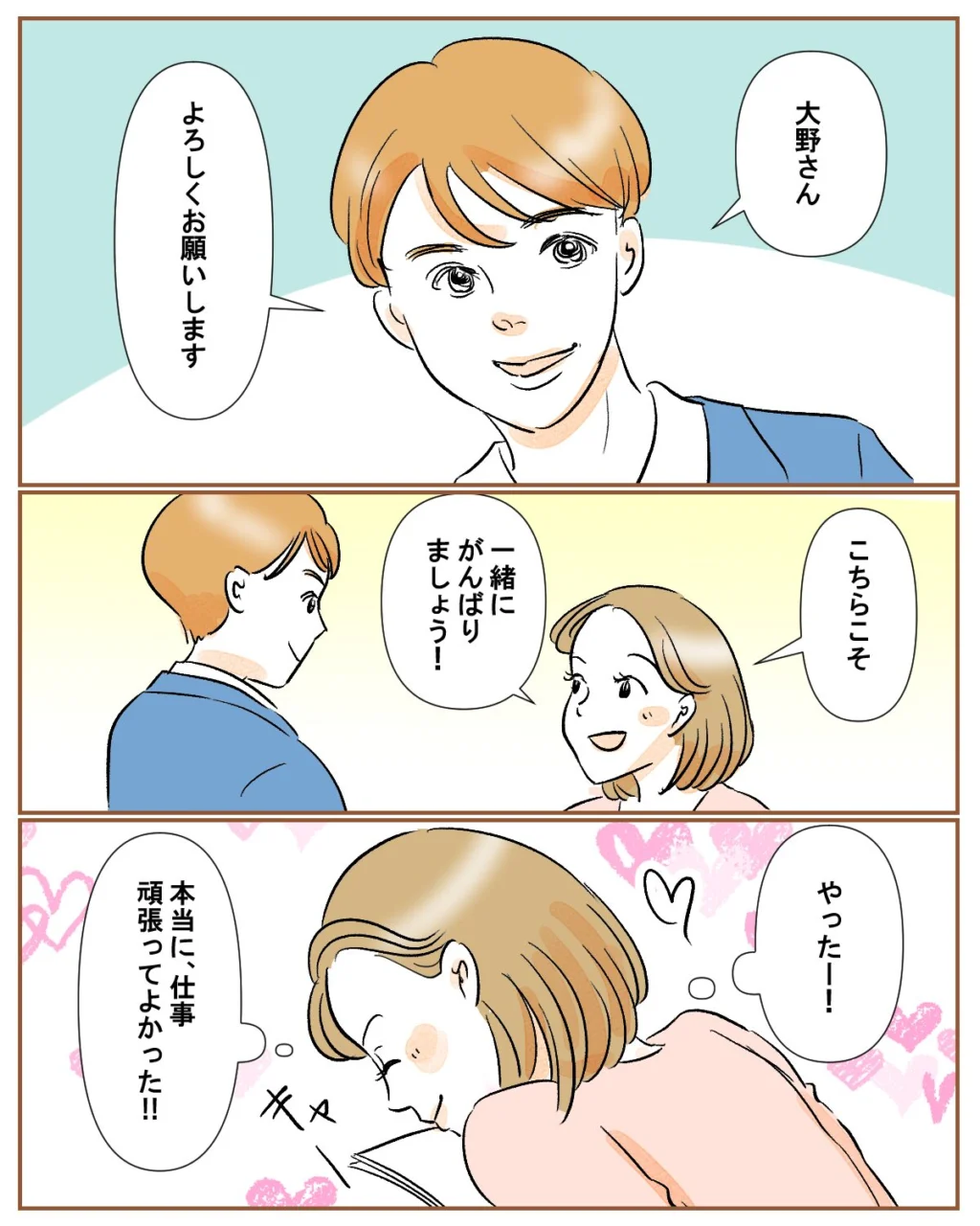 それからしばらくして、会社で上司に呼ばれた私は「次の企画だけど、大野さんメインで進めてみる?補佐に佐藤君つけるから」と新しい案件のメインを打診されました。「先方も期待してるから頑張って」と言ってもらえ、自分がこれまでやってきたことが評価されたことをとても嬉しく思いました。