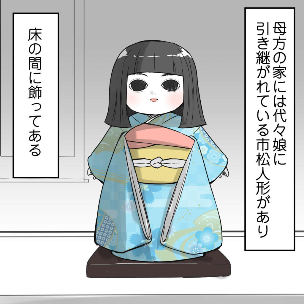 私は園田マキ。母方の実家には代々娘に引き継がれている市松人形があり、床の間に飾ってあります。
