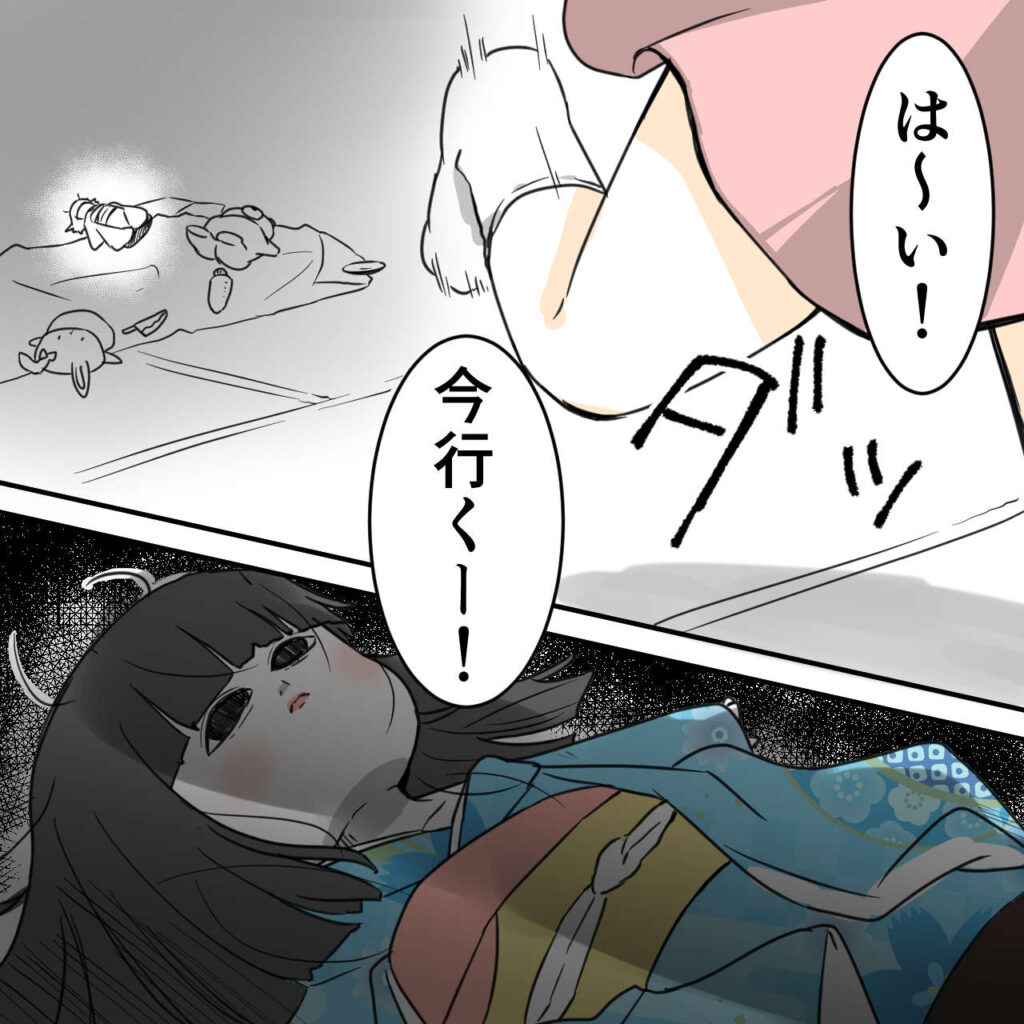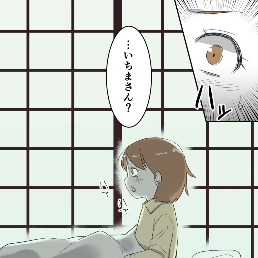 ハッと目を覚ますと、私はうなされていたようで、息が上がっていました。その場を見回しても誰もいません。もちろんいちまさんも私が寝ている部屋にはありませんでした。でも私にはハッキリいちまさんが見えたのです。とても不思議な体験でした。