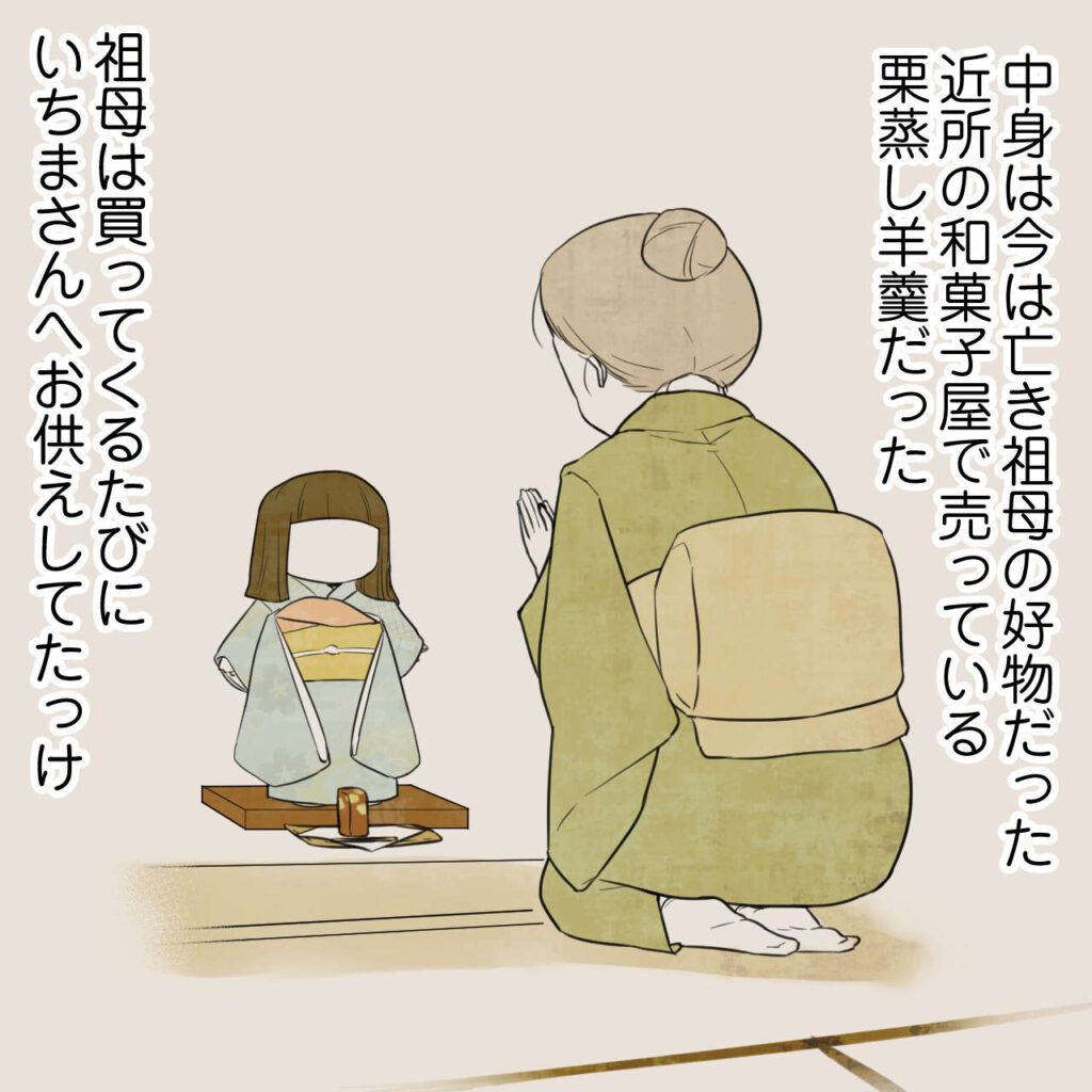 「こちらの栗蒸し羊羹は、今は亡き祖母の好物だった。近所の和菓子屋で売っている栗蒸し羊羹で、祖母が買ってくるたびに、いちまさんへお供えしていたことを思い出しました。