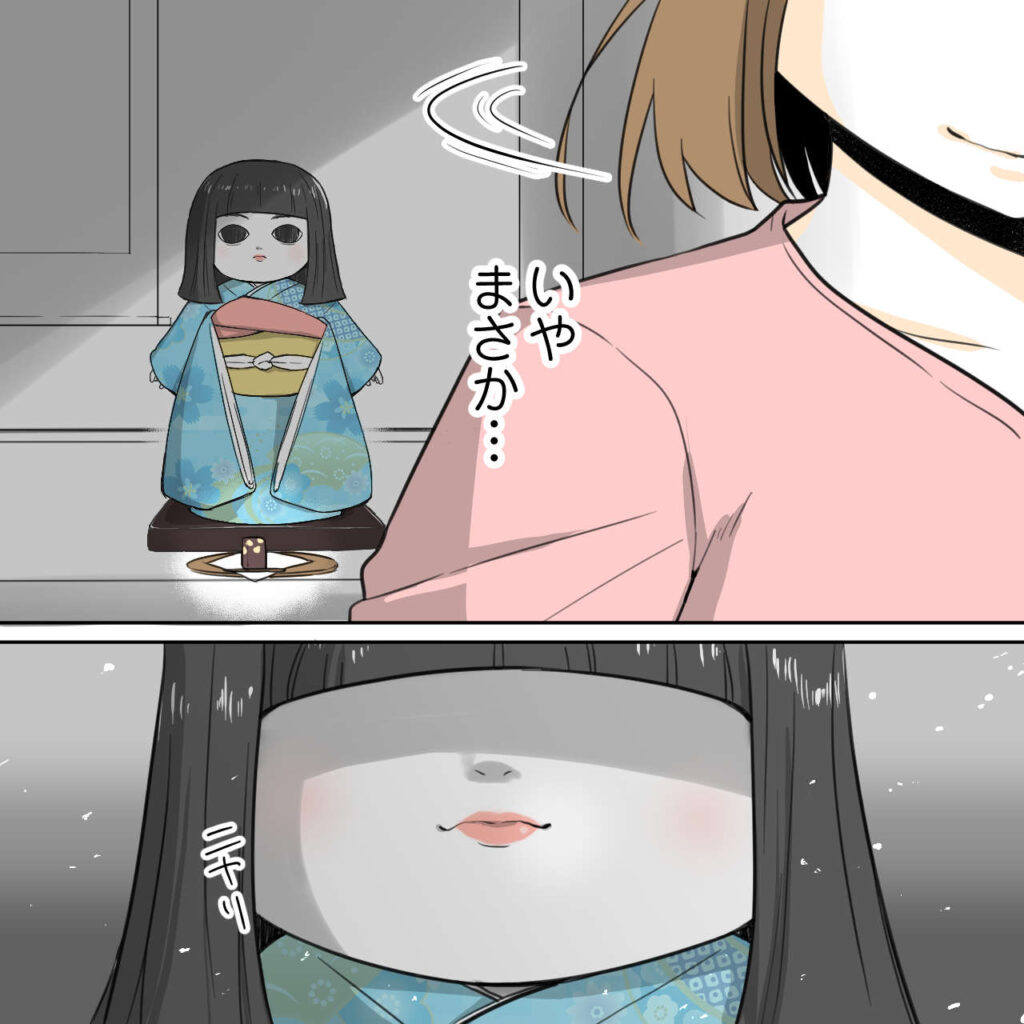 深々と頭を下げ謝罪した後、山本さんのご主人は車に戻り、山本さんと二人だけに。すると「その人形ってもしかして呪われたりしてます?」と青ざめた顔で聞かれ、「呪い!?」と驚きました。かなりの悪夢を見せられたと聞き、「きっと罪悪感が見せた夢ですよ」と答えると、「もうお返ししたんで大丈夫・・ですよね?」と呪いの被害がないことを確認し帰って行ったのでした。