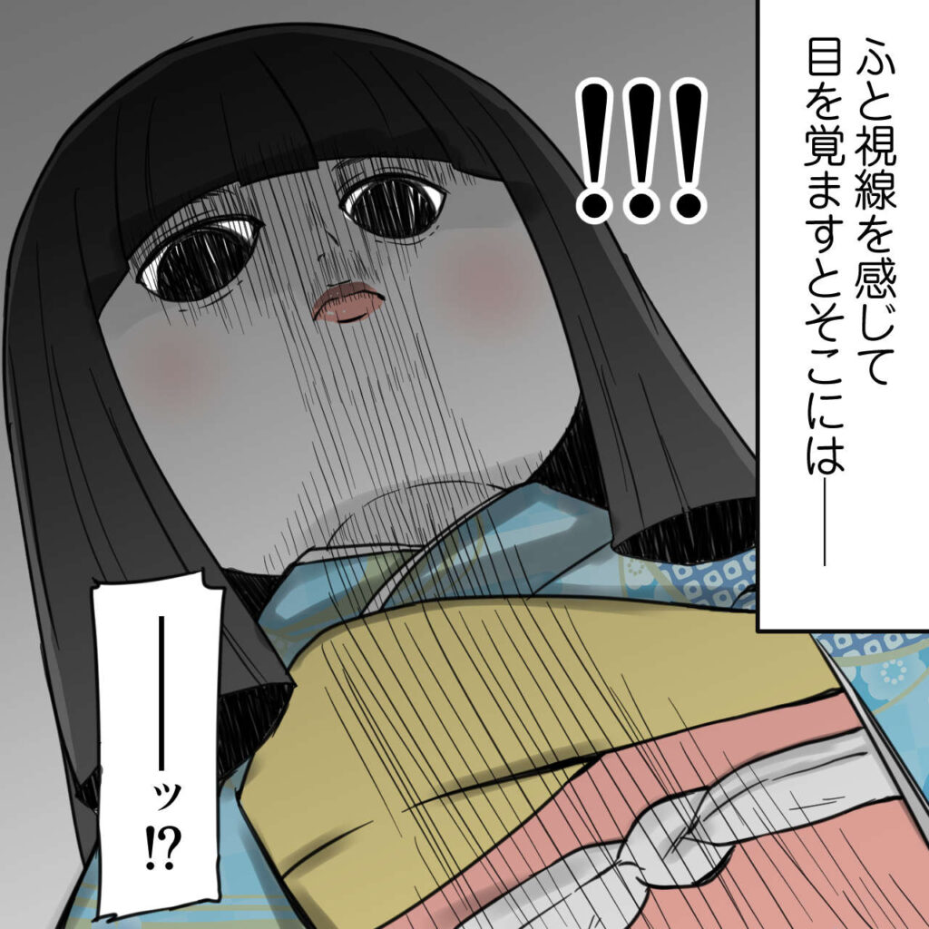 園田家に代々伝わる市松人形は「いちまさん」として大切にされていましたが、私にとっては少し怖い存在でした。ある日いちまさんを雑に扱ってしまった夜のこと、ボサボサの髪のいちまさんが、悲しいような怒っているような顔をしてマキさんの夢に現れてビックリ!その後、いちまさんの髪を櫛でときながら、大切に扱うことを誓いました。