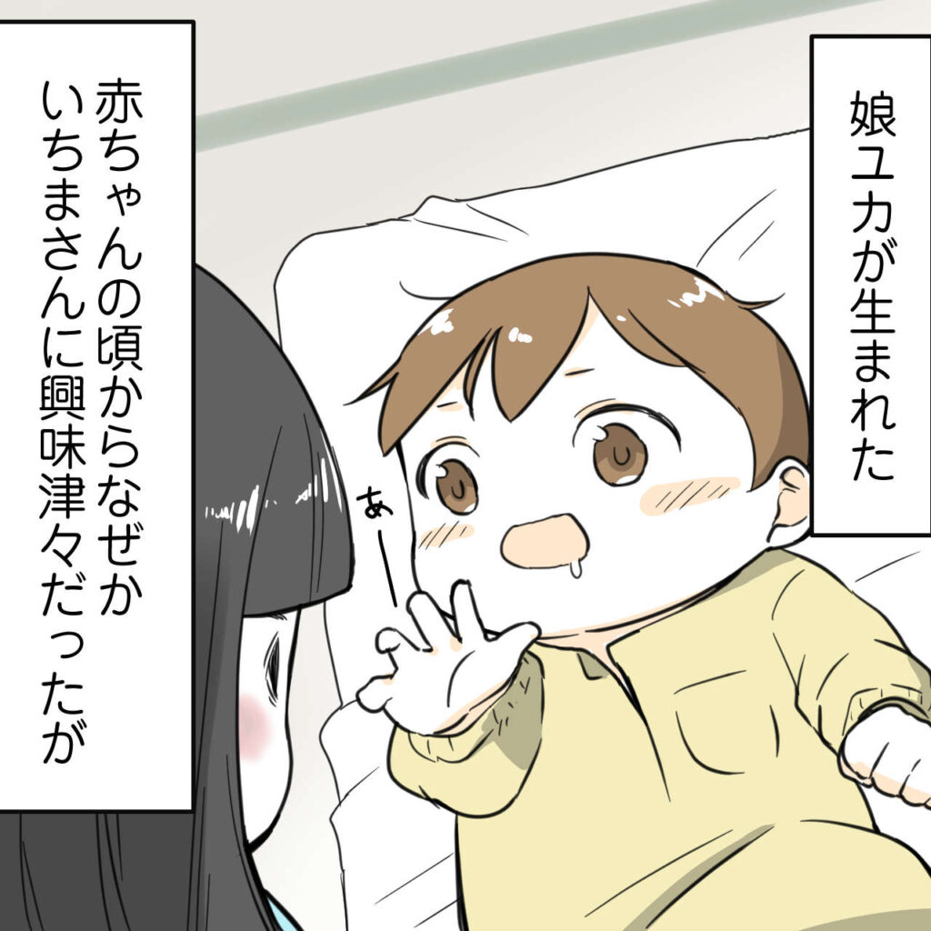 その後、娘ユカが生まれました。赤ちゃんの頃から、なぜかいちまさんに興味津々のユカは、