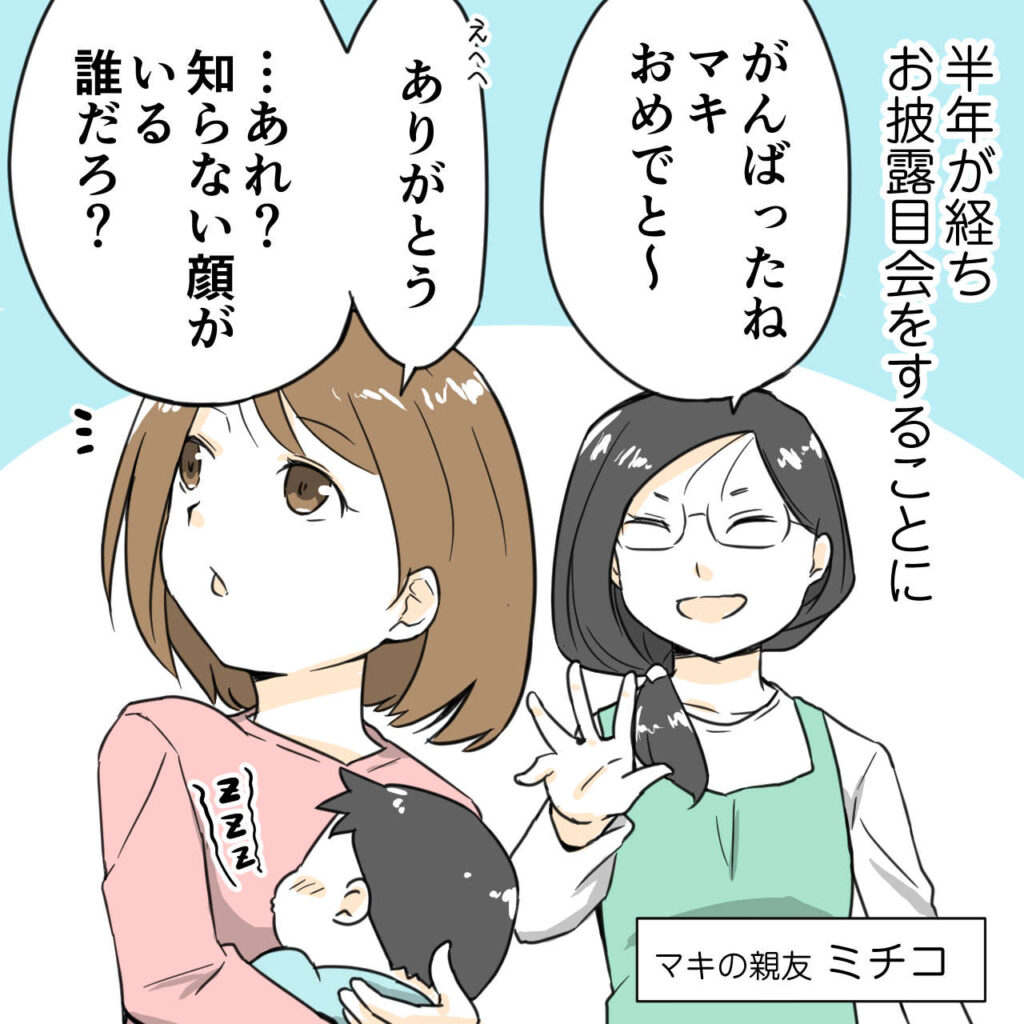 その後、第二子ソウスケくんを出産したマキさん。弟ができたユカちゃんはお姉さんになりました。半年後にソウスケくんのお披露目会をすることになり、出席者に知らない顔が。ミチコさんがスズカちゃんのママ渡辺さんと、キラくんのママ山本さんを教えてくれました。その後、子ども達が床の間で遊んでいる時に大きな音が聞こえ、驚いていたユカちゃん、何か重大なことが起きていないことを祈るばかりですね。