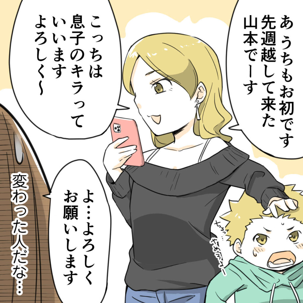 そして、「あ、うちもお初です。先週越して来た山本でーす。こっちは息子のキラっていいます。よろしく~」と挨拶され、「変わった人だな・・」と思いつつ、「よ・・よろしくお願いします」と挨拶したものの、ため息が止まりませんでした。