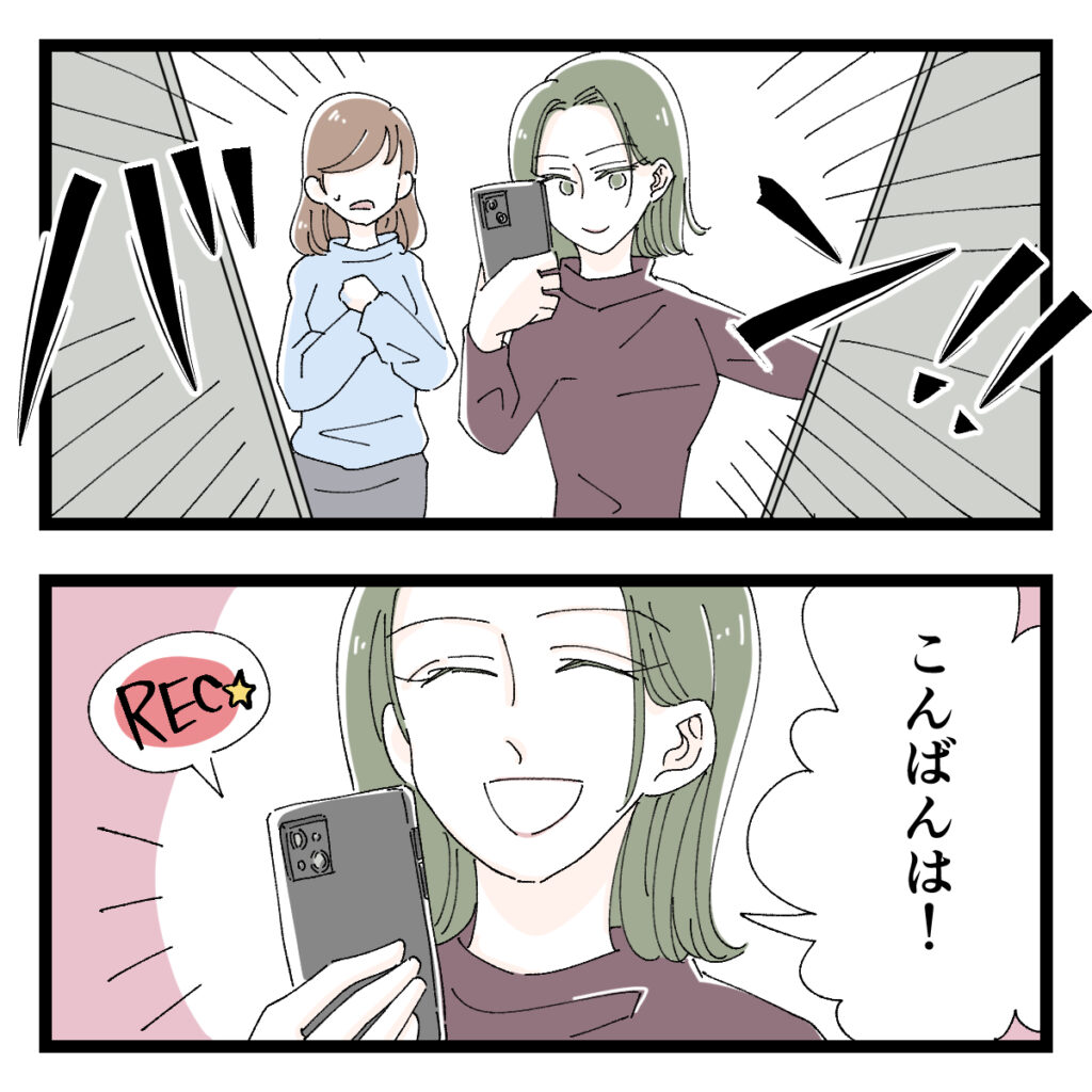 サクラコは鍵を開けると同時にスマホの動画スイッチをON!バン!!と扉を開けると、「こんばんは!」大きな声でそう言い、部屋に入っていきました。美人なサクラコの笑顔がもはや恐怖。