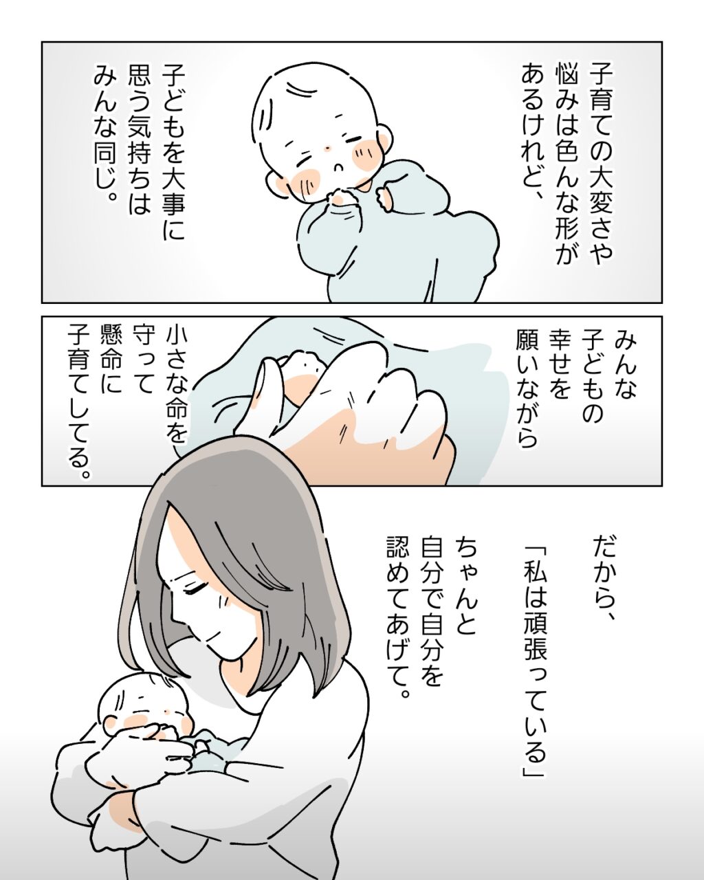 子育ての大変さや悩みは色んな形があるけれど、子どもを大事に思う気持ちはみんな同じ。みんな子どもの幸せを願いながら、小さな命を守って懸命に子育てしてる。だから、「私は頑張っている」とちゃんと自分で自分を認めてあげてほしい。できない自分を責めて限界まで追い詰められたナオを見て強くそう思いました。