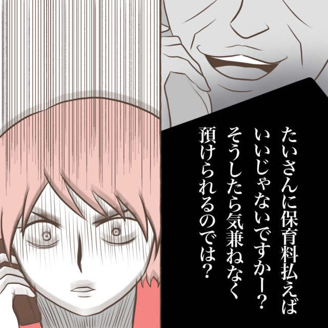 ニートの義弟たいくんが同居していることでわたすさんの娘姫ちゃんが保育園退園の危機に・・!市役所の子育て支援課の担当者に、定員オーバーのせいなのか、もしも仕事を持たない同居がいる場合は?と対応について尋ねてもちゃんとした答えが返って来ず・・生理前のわたすさんがネチネチ攻撃で反撃するも「これだから最近の30代は嫌だねー」と言われる始末(汗)挙句の果てに「そんなに保育料を支払いたいなら・・」と提案してきたのは・・