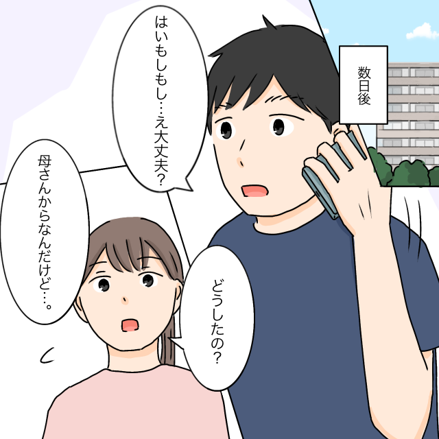 焼肉をごちそうになってから数日後、義母から夫に電話がありました。急に慌てて「え、大丈夫?」と言った夫の様子で心配になりました。