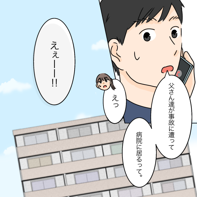 義母からの電話は、義父たちが事故に遭って病院にいるという連絡でした。「義父たち」ということは、おばあちゃんも!?夫と私は急いで病院へ駆けつけました。
