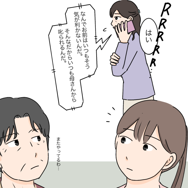 すると義母のスマホに、またしても義父からの着信が入りました。「なんでお前はいつもそう気が利かないんだ、そんなだからいつも母さんから叱られるんだ」義母は、義父の理不尽な言葉に言い返すことはせず、ただただ「はい、はい」とうなずいていました。