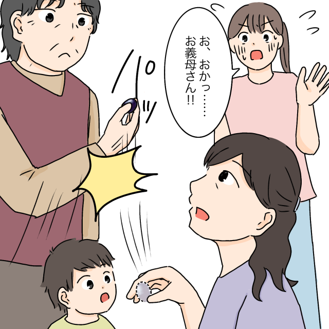 「お、おかっ。・お義母さん!!」私がそう声をかけるより早く、義祖母がやって来て、義母からぶどうを取り上げました。何が起きたのかわからずきょとんとしている義母と、突然ぶどうが消えて驚くゆうた。