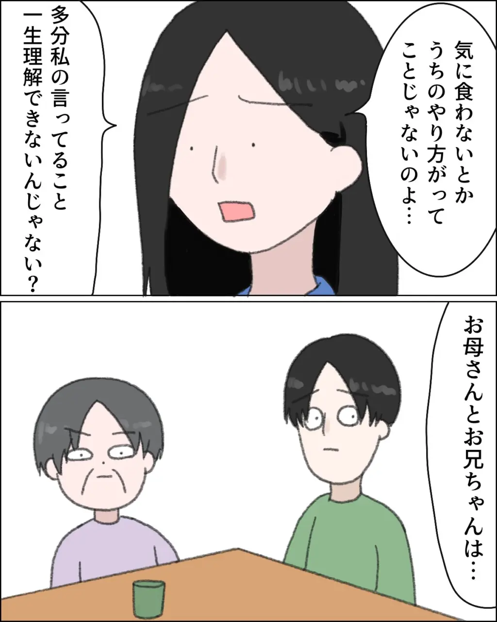 「気に食わないとか、うちのやり方がってことじゃないのよ・・。多分、私の言ってること一生理解できないんじゃない?お母さんとお兄ちゃんは・・」と呆れたように言ったマリさんは、