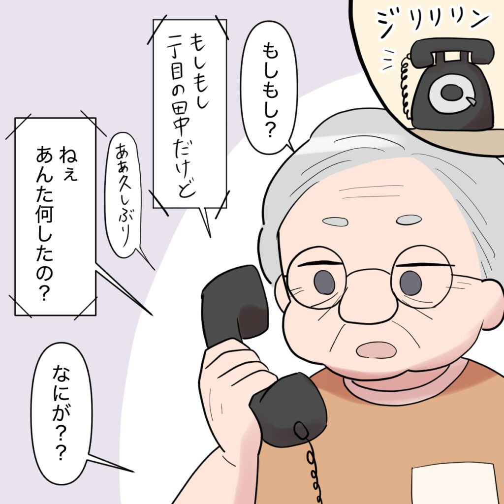 私が「内緒にしてください」と言いつつご近所さんにさりげなく義祖母の嫁いびりと健気に働いている義母のことを広めてしばらく経ったある日、義祖母は近所の田中さんからの電話を受けました。義祖母が電話に出るなり田中さんに「ねぇあんた何したの?」と言われ、義祖母は訳が分かりません。
