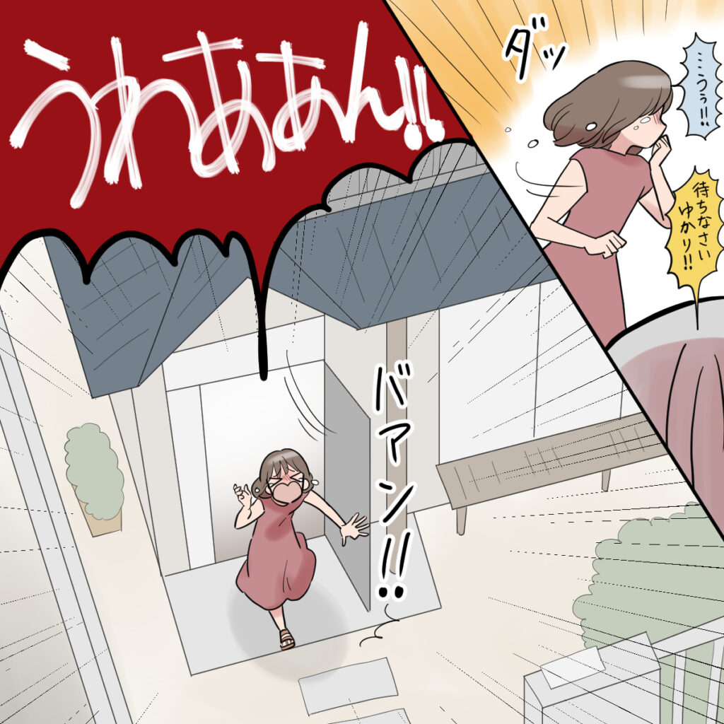 そして「待ちなさいゆかり!」と止める義祖母の言葉を背中に聞きながら家の外に飛び出しました。そして「うわああん!!」と、近所中に響き渡るほどの大声で泣き叫びました。