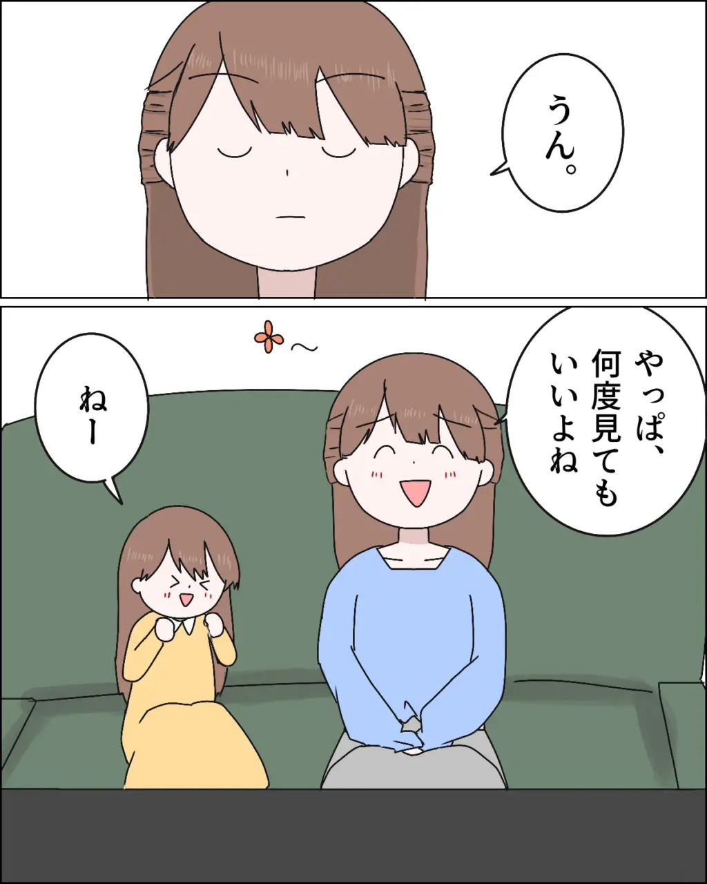 娘の隣に座って一緒に鑑賞する気満々。だって、やっぱり何度見ても素晴らしいアニメなので、私もついもう一度見たくなってしまいました。