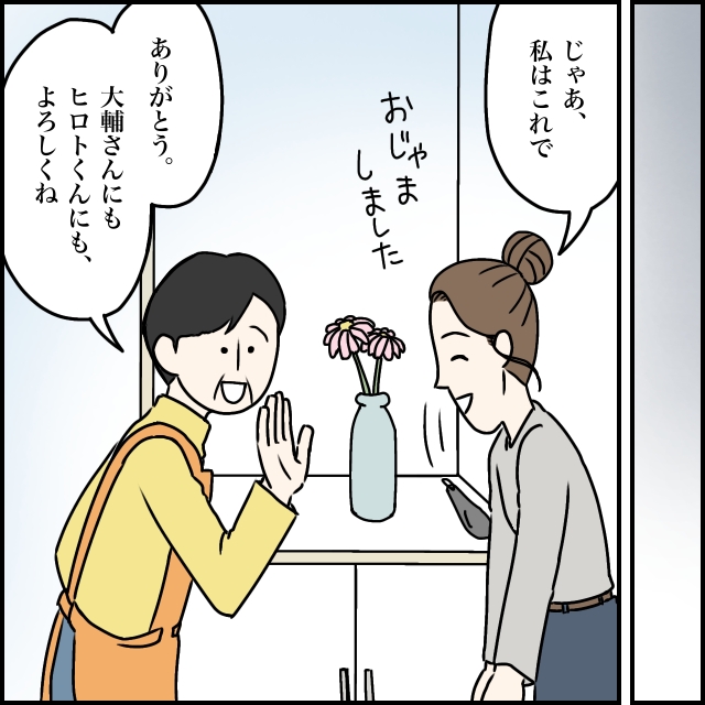 「じゃあ、私はこれで」ペコリとお辞儀をしたひろみちゃんに、「ありがとう、大輔さんとヒロトくんにもよろしくね」と手を振りました。私と吉雄さんだけじゃとても義姉2人に太刀打ちできなかったので、ひろみちゃんが来てくれて本当に助かりました。