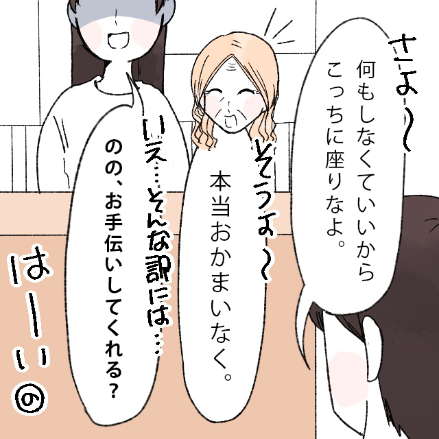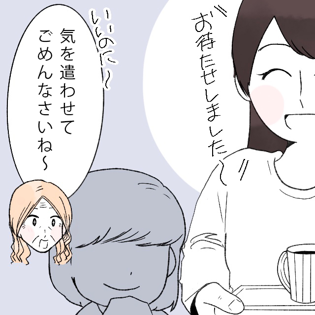 そして、「お待たせしました~」そう言ってお茶を運ぶと、「いいのに~。気を遣わせてごめんなさいね~」と言う義母。