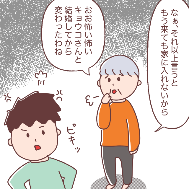 それでも義母は「おお怖い怖い。キョウコさんと結婚してから変わったわね。」と全く動じない義母。