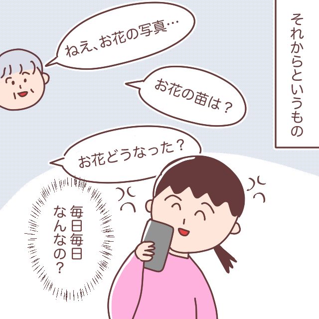 それからというもの、毎日毎日お花の写真、様子、どうなった?とメッセージしてくる義母にイライラが募りました。どうして私がお花の観察記録を義母に送ることになってるの!?私は作戦を思いつきました。