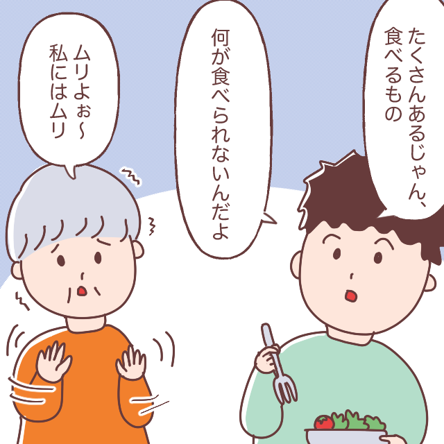 「たくさんあるじゃん、食べるもの。何が食べられないんだよ」夫も義母に言いました。「ムリよぉ~私にはムリ」そう言って震える義母。