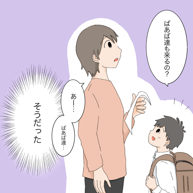 ひとり思いにふけっていると、「ばあば達も来るの?」と陽が聞いてきました。あー。ばあば達ね。