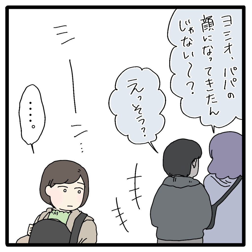 私の言葉は聞こえてないとばかりに、「ヨシオ、パパの顔になってきたんじゃない~?」ヨシオに話しかける義母に、「えっそう?」まんざらでもなさそうに答えるヨシオ。