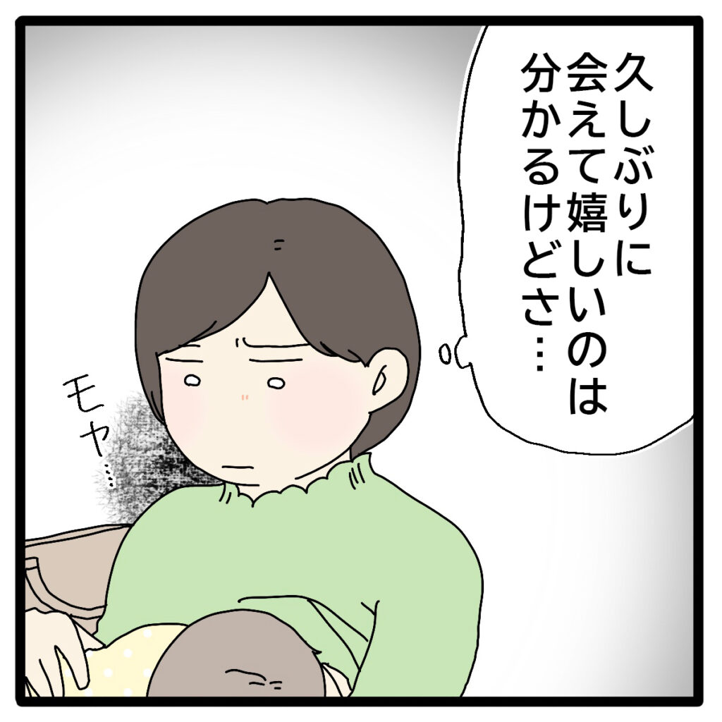 「久しぶりに会えてうれしいのはわかるけどさ・・」授乳室であかりに授乳しながら、モヤモヤは募るばかり。
