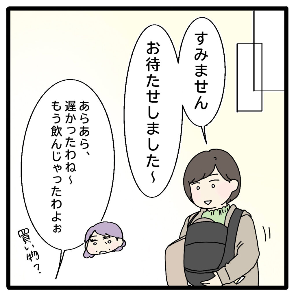 オムツ替えと授乳を急いで済ませ、「すみません。お待たせしました~」あかりを抱っこして戻ってくると、「あらあら、遅かったわね~。もう飲んじゃったわよぉ。買い物?」と私が何をしていたのか全く理解していない様子の義母。