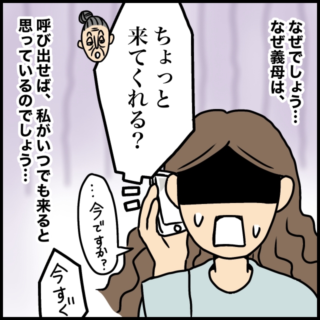 この日も「ちょっと来てくれる?」と電話がありました。なぜ義母は、呼び出せば私がいつでも来ると思っているのか。「今ですか?」と抵抗してみても「今すぐ」とオウム返し。先に用事の内容を言ってくれればいいのに。それでも義母に何かあっては困るのでいつも急いで義母の家へ走る私です。