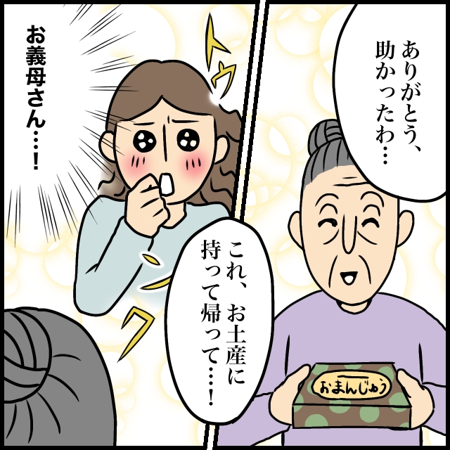 それでも帰り際、義母が「ありがとう、助かったわ」と笑顔で言ってくれて「お土産に持って帰って」とお饅頭の箱をくれたので、モヤモヤしていた気持ちがすっかり晴れました。タダでこき使う、なんてボヤいてごめんなさい。そんな気持ちでお饅頭を受け取り帰宅しました。帰ったらさっそくおやつタイムにしようかな。